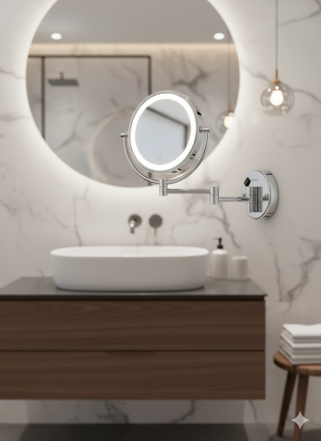 Bocchi Ayna Büyüteçli Led Işıklı Çift Kollu Çift Yönlü - Premium Ürün