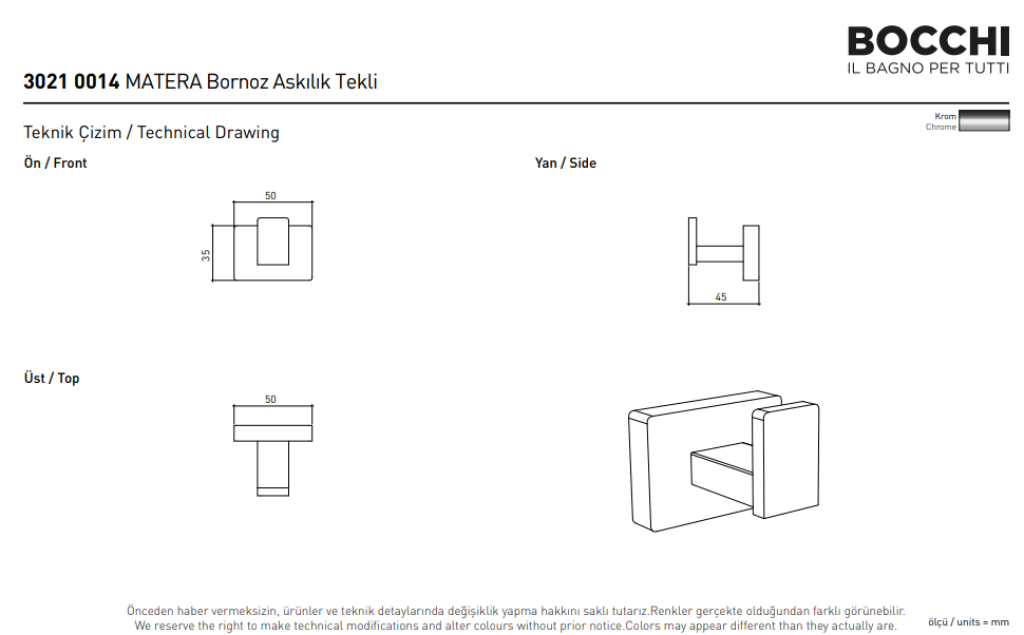 Bocchi Matera Bornoz Askılık Krom