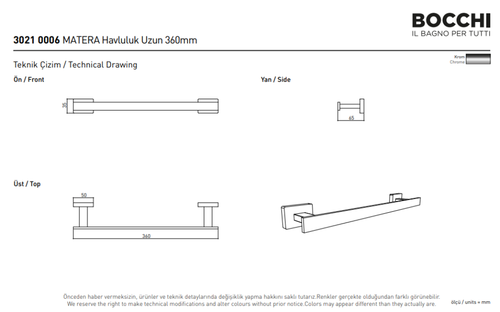 Bocchi Padova Havluluk Uzun 350 Mm Krom