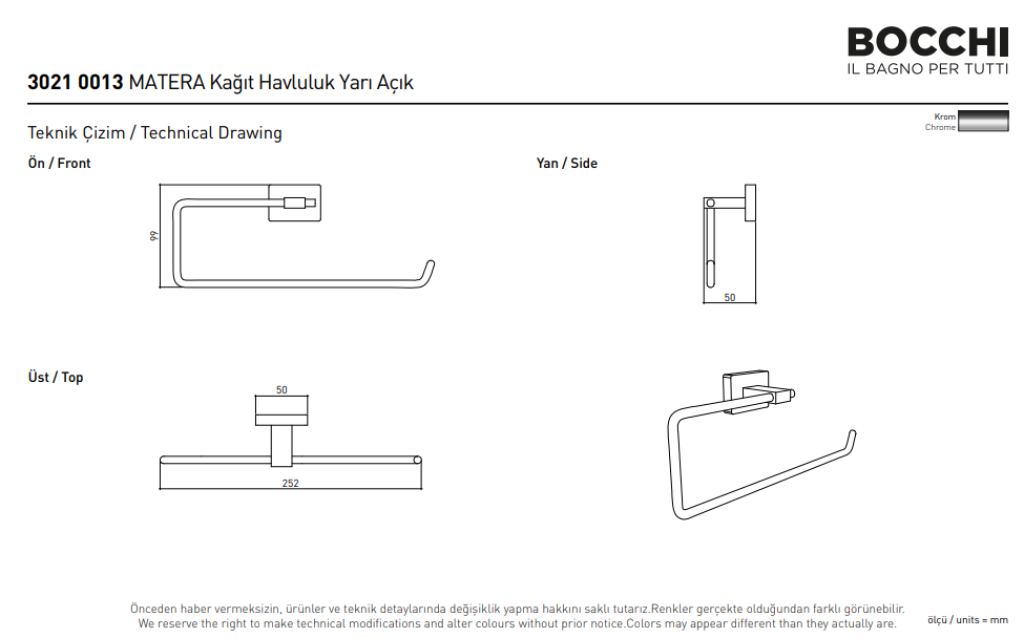 Bocchi Matera Havluluk Yarı Açık Krom