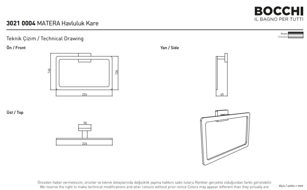 Bocchi Matera Havluluk Uzun 45 Cm Krom