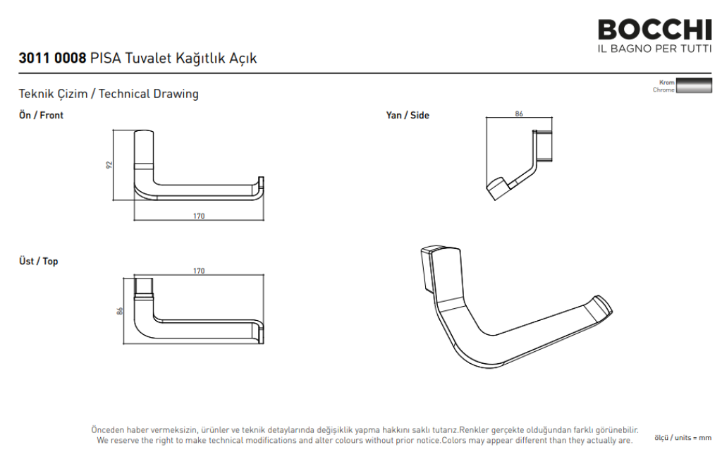 Bocchi Padova Tuvalet Kağıtlık Krom 3017 0007Bocchi Padova Tuvalet Kağıtlık Krom