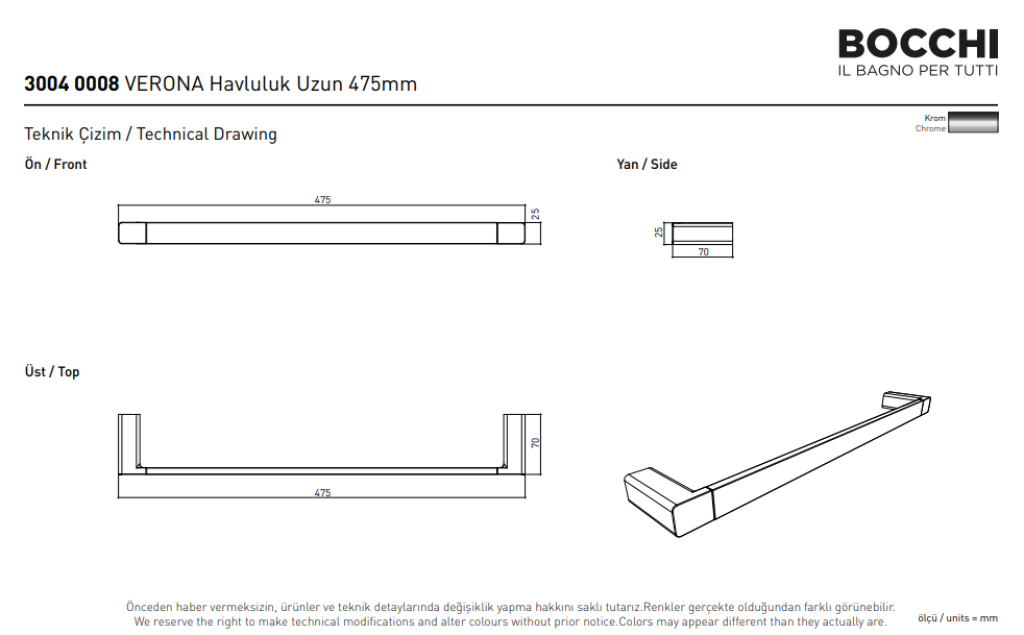 Bocchi Verona Havluluk Uzun 475 Mm Krom